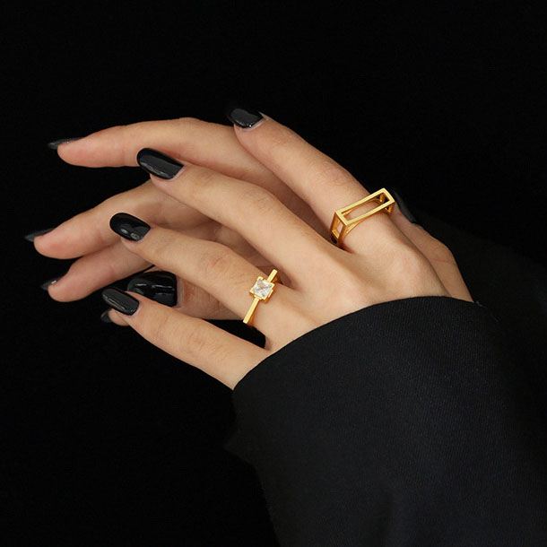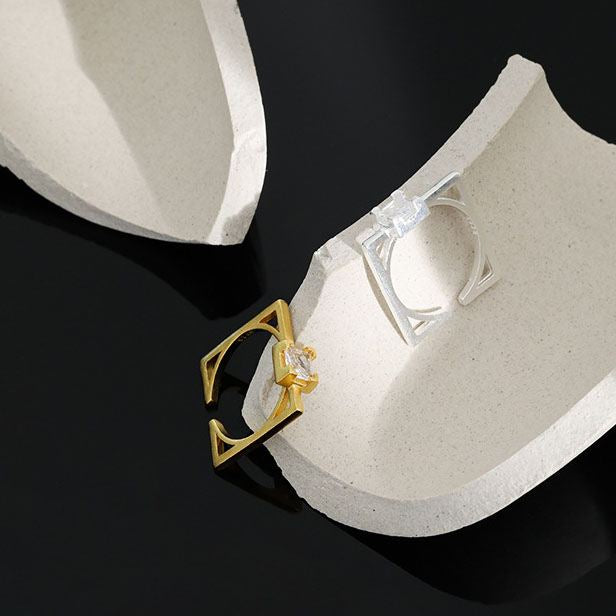 Geometry Square CZ 925 Sterling Silver Adjustable Ring