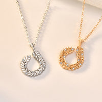 New CZ Wheat Ear Circle 925 Sterling Silver Necklace